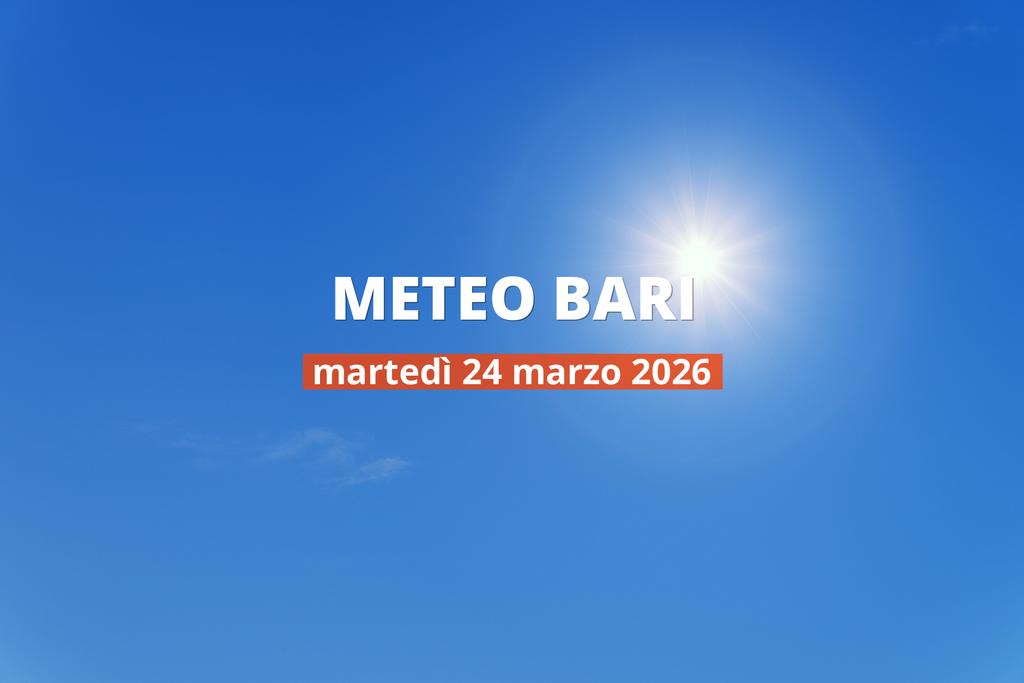 Bari - bollettino meteo di oggi (martedì 24/03/2026) Martedì a Bari sarà piuttosto fresco. Nel momento più caldo della giornata, intorno alle 12:00, i termometri segneranno 15°C. La temperatura minima si registrerà intorno alle 5:00 e sarà di 8°C.
