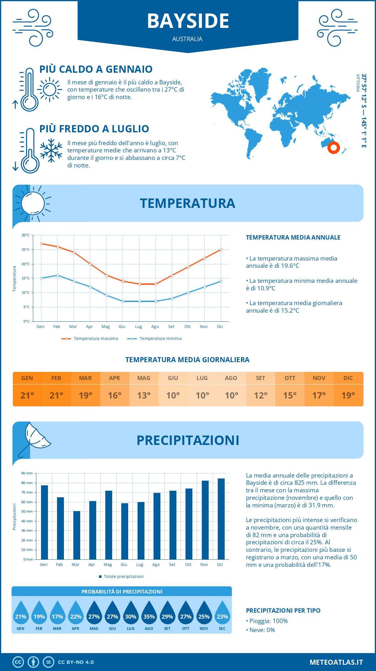 Bayside (Australia) - meteo e clima annuale: temperature medie e precipitazioni