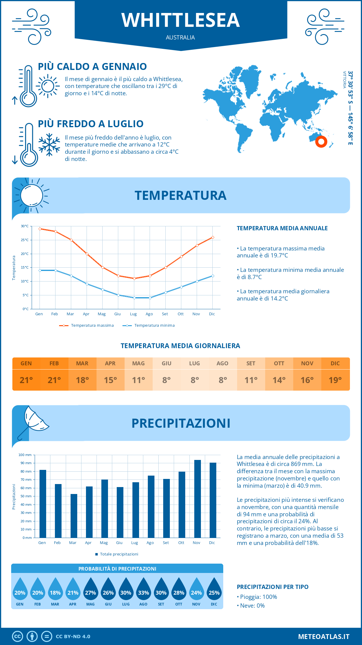 - Temperatura media giornaliera: 21°C