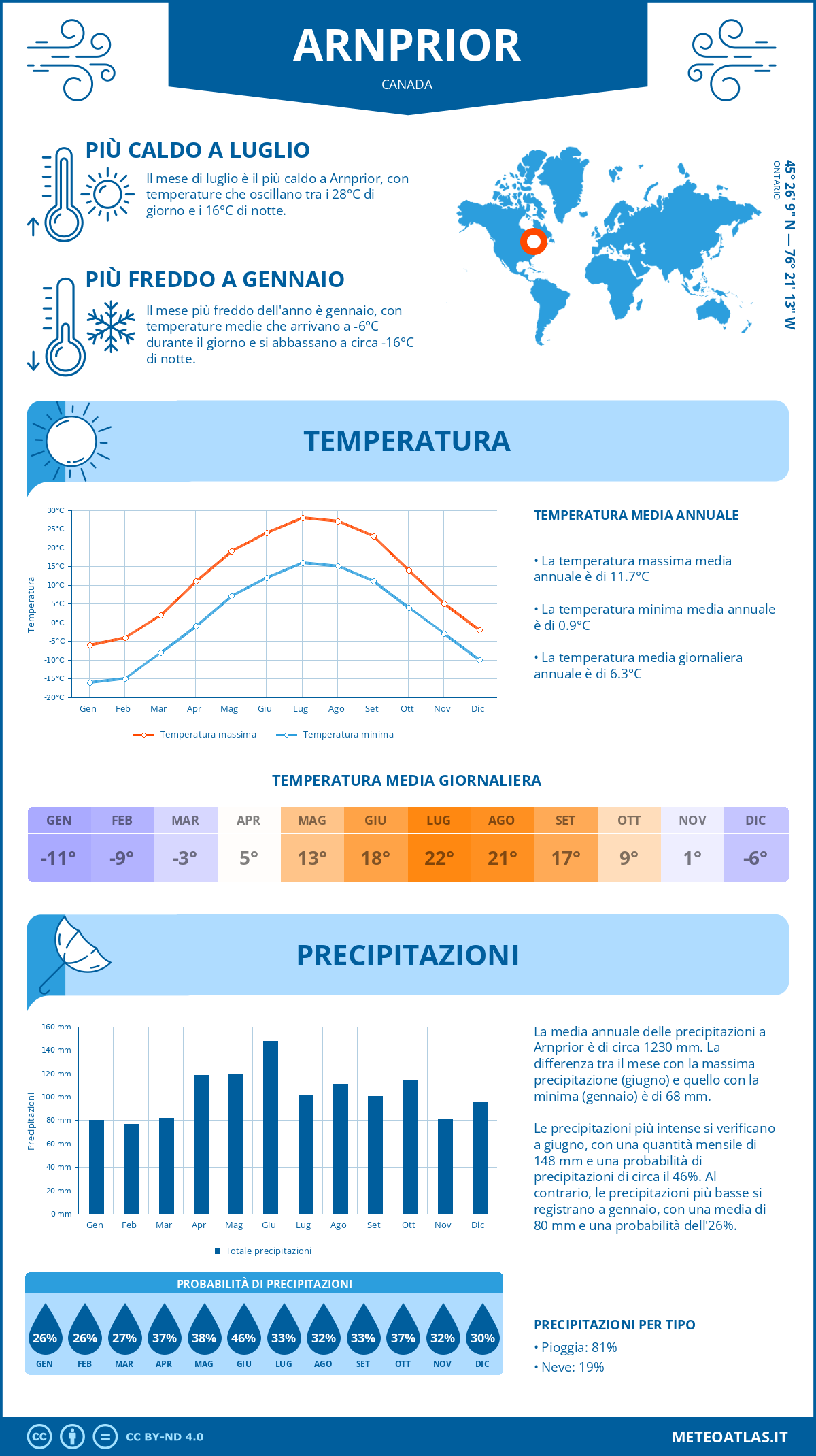 Arnprior (Ontario) - meteo e clima annuale: temperature medie e precipitazioni