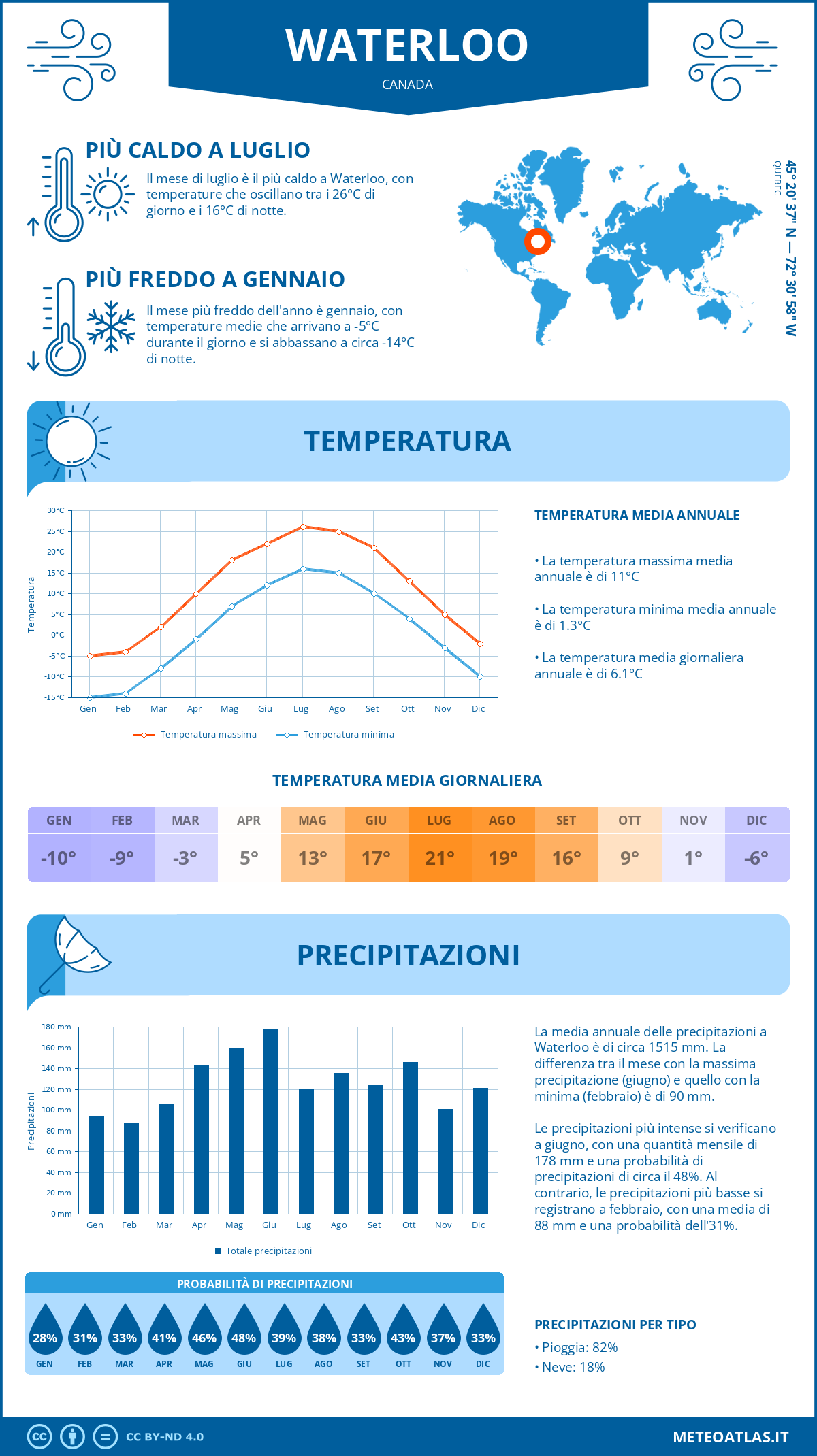 Waterloo (Quebec) - meteo e clima annuale: temperature medie e precipitazioni