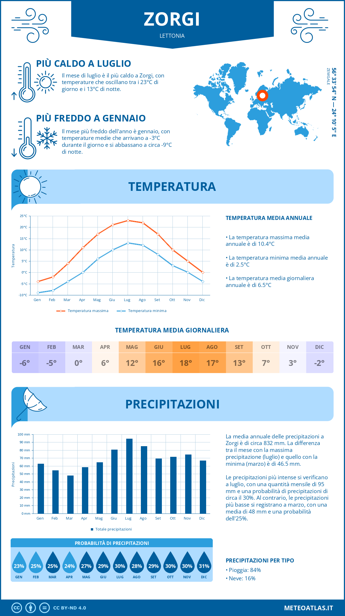 Zorgi (Lettonia) - meteo e clima annuale: temperature medie e precipitazioni